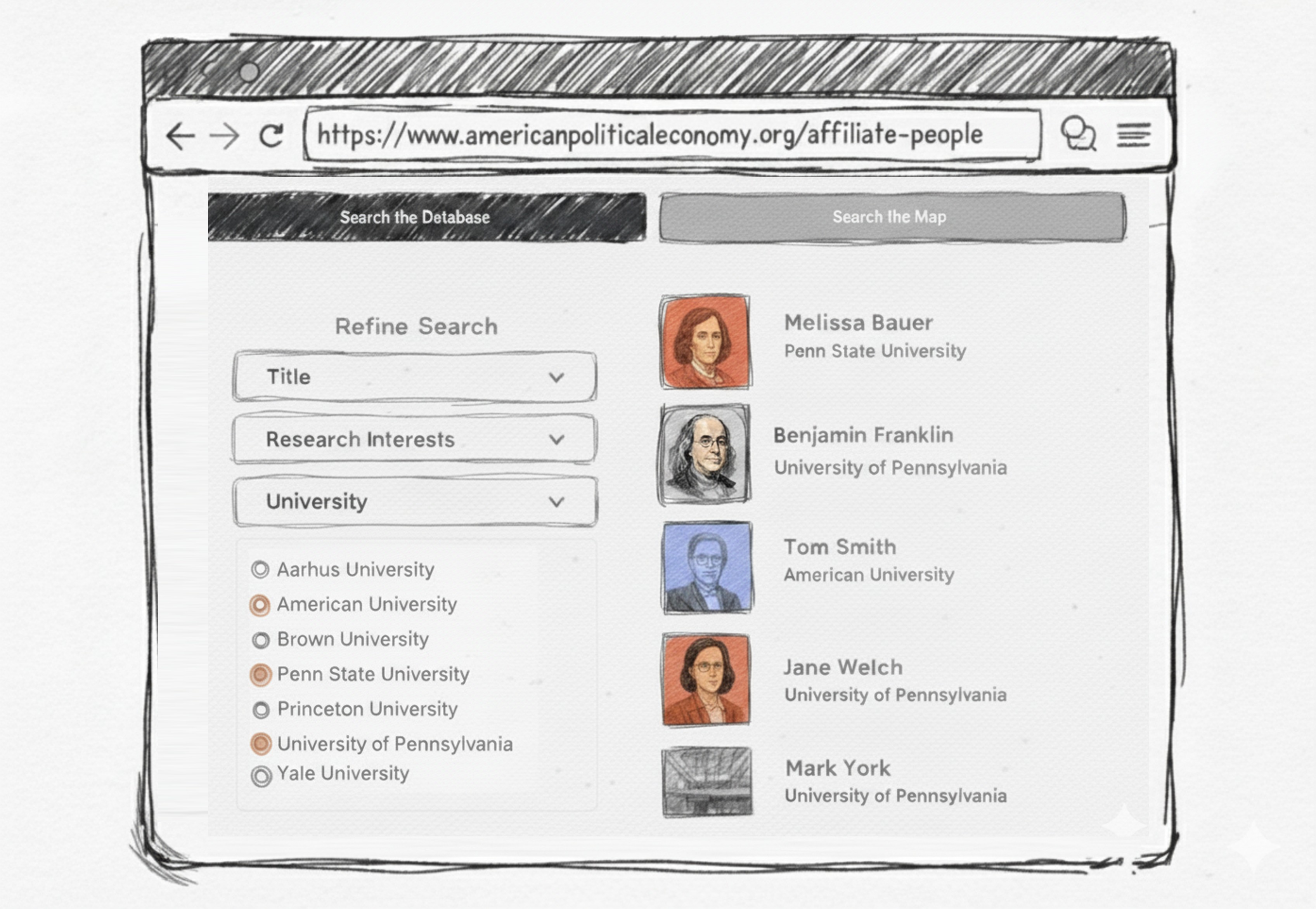 The APE Affiliate Network is a dynamic new resource designed to connect scholars working on issues relating to the American Political Economy across institutions and disciplines.
